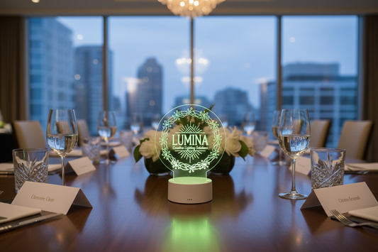 Custom LED 6"x6” Round Acrylic Table Sign. Wireless Remote Included. Your Logo or Message.