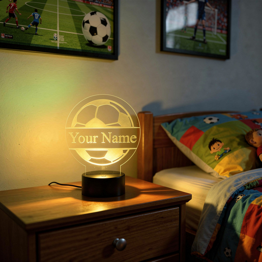Custom Soccer LED 6"x6” Round Acrylic Table Sign. Wireless Remote Included.