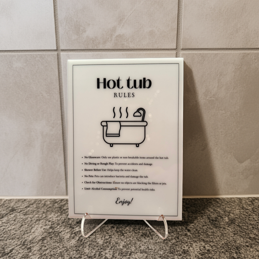 Hot Tub Rules - Vacation Rental House Rules Signs, 5x7 inch Acrylic Signs (Design 41)