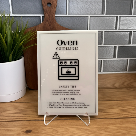 Oven Guidelines - Vacation Rental House Rules Signs, 5x7 inch Acrylic Signs (Design 39)