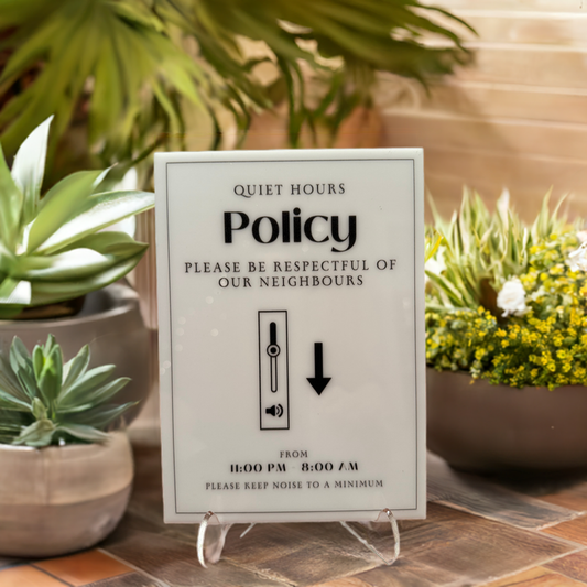 Quiet Hours Policy - Vacation Rental House Rules Signs, 5x7 inch Acrylic Signs (Design 5)