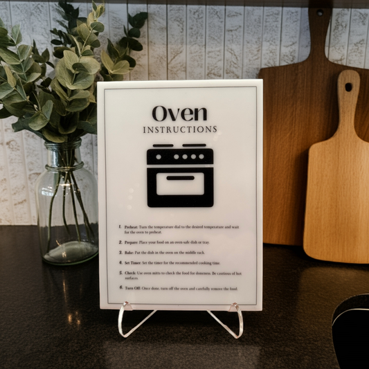 Oven Instructions - Vacation Rental House Rules Signs, 5x7 inch Acrylic Signs (Design 38)