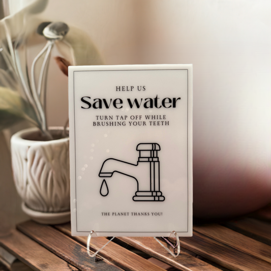 Help Us Save Water - Vacation Rental House Rules Signs, 5x7 inch Acrylic Signs (Design 8)