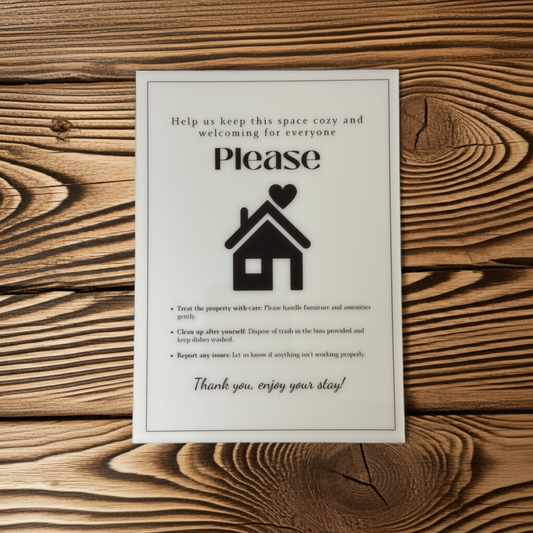 Help us keep this space cozy - Vacation Rental House Rules Signs, 5x7 inch Acrylic Signs (Design 42)