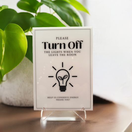 Please Turn Off The Lights - Vacation Rental House Rules Signs, 5x7 inch Acrylic Signs (Design 9)