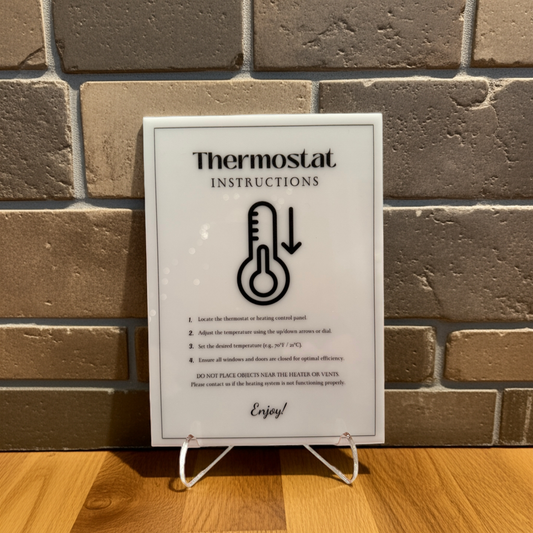 Thermostat Instructions - Vacation Rental House Rules Signs, 5x7 inch Acrylic Signs (Design 37)