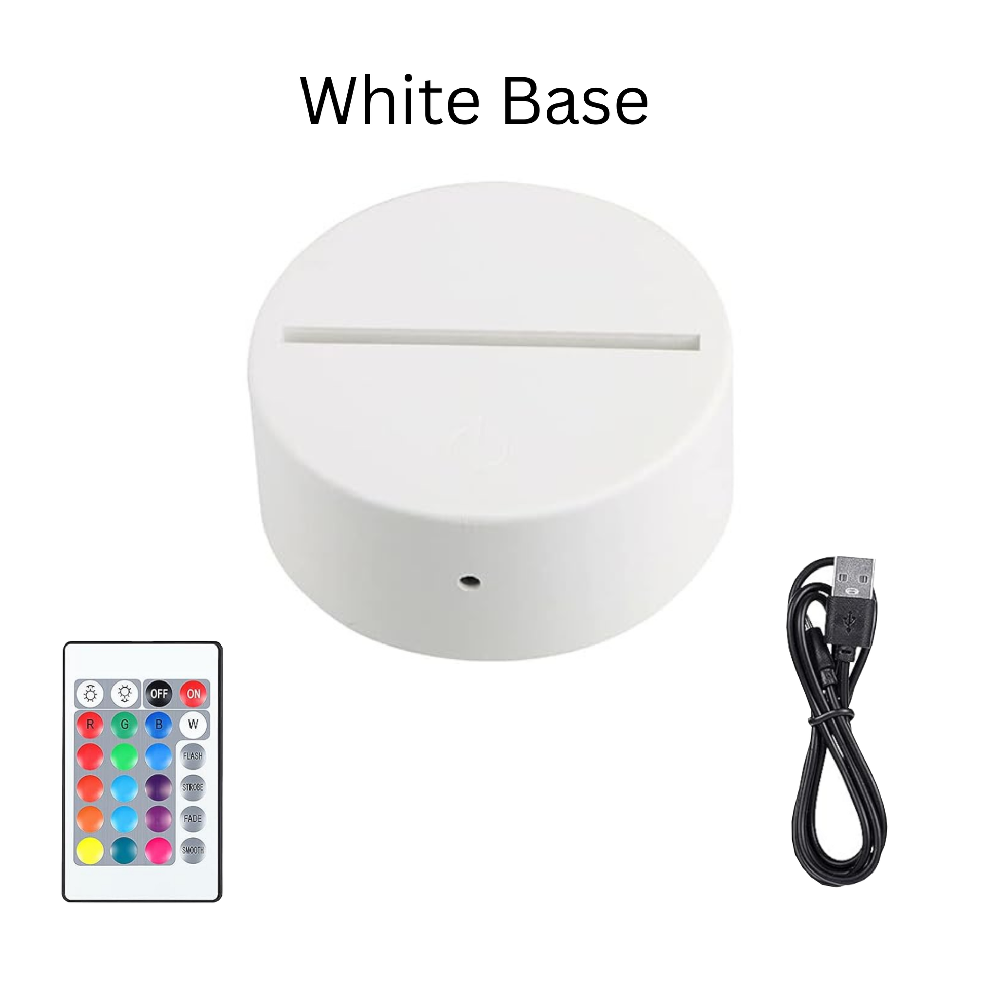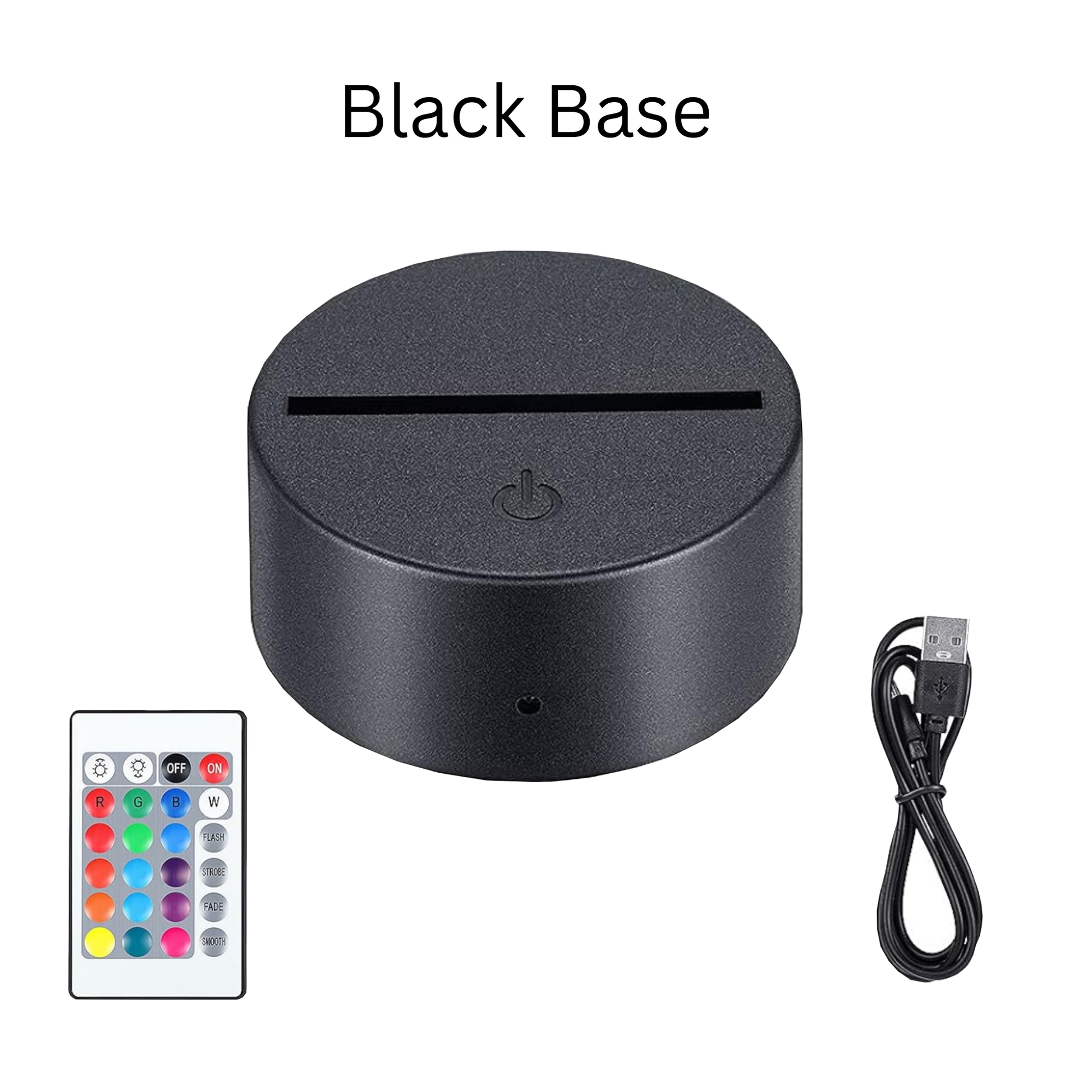 LED base comes on White or Black and a wireless remote control to turn it on or off and change all 16 colors.